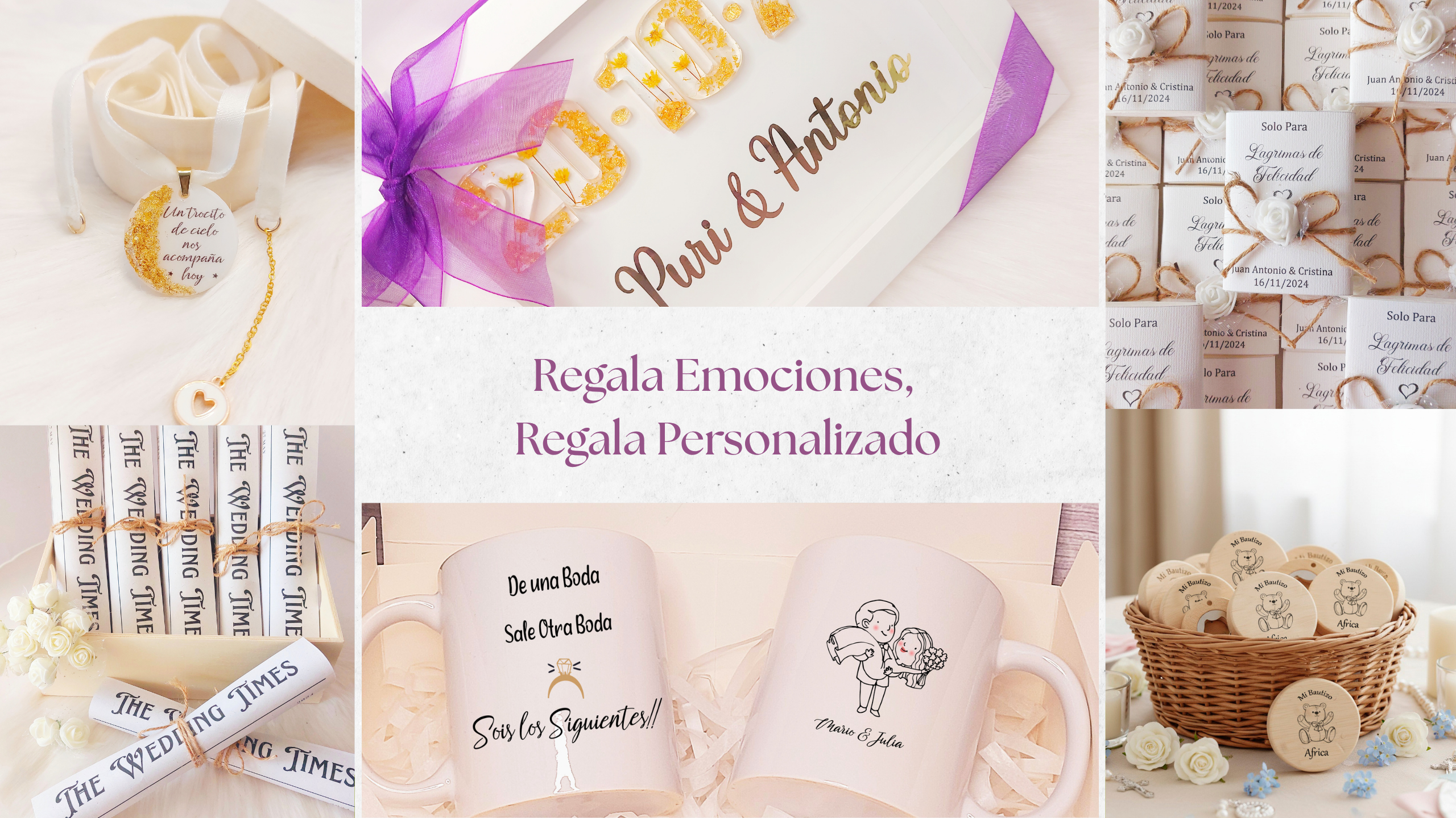 Nos especializamos en regalos personalizados y detalles únicos para bodas, bautizos, comuniones y eventos especiales.